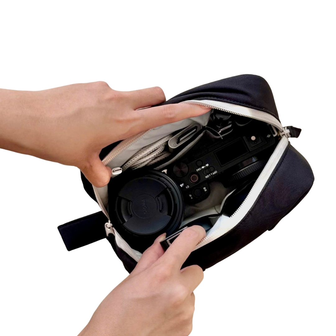 - Siêu rộng rãi: Máy ảnh, son, dây sạc — tưởng không vừa mà lại vừa được hết